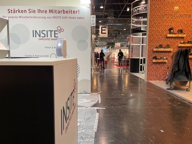 Nur ein paar Handgriffe fehlen noch und wir sind bereit, interessierte Messebesucher zu empfangen.