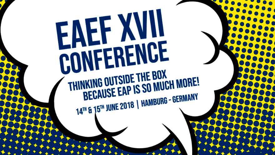 Motto der Konferenz der EAEF (Employee Assistance European Forum) ist "Thinking outside the box - because EAP is so much more!". Zielsetzung ist der Austausch mit Kunden und zwischen den EAP-Anbietern, sowie News zu Trends, Anforderungen und Herausforderungen des Marktes. Es präsentieren sich u.a. verschiedene Anbieter und Kooperationen. Thema wird auch die internationale Vernetzung von EAP-Anbietern sowie Synergiegewinnung sein.