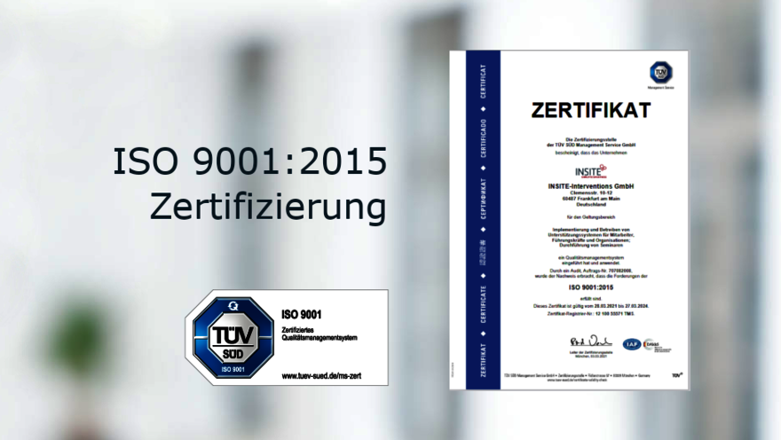 INSITE ist bereits seit vielen Jahren nach ISO 9001:2015 zertifiziert. Wir freuen uns über ein erfolgreiches Audit und die damit verbundene Rezertifizierung unseres Qualitätsmanagements.