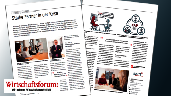 Wie hilft eine EAP-Beratung in der Krise? Bei welchen Themen unterstützt INSITE? Lesen hier Sie den Artikel des Wirtschaftsforums.